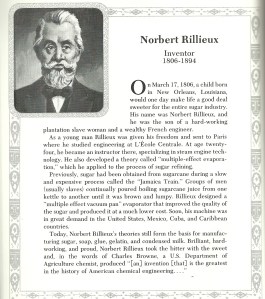 Black History Month is filled with familiar names such as Martin Luther King Jr., Rosa Parks, Jackie Robinson; even Oprah Winfrey. All are heroes in their own right but what about the forgotten heroes. As we posted a few days ago about one of our heroes, Percy Julian, we find another forgotten genius who has made life sweeter for us all. Did you know that sugar had to go through a very slow and expensive process to be extracted from sugarcane? The process was called the Jamaica Train and was usually done by slaves continually pouring boiling sugarcane juice from kettle to kettle until it was brown and lumpy. Norbert Rillieux*(1806-1894) recognized the power of steam and vapors and created what became the basis for all modern industrial evaporation which was to harness the energy of vapors rising from the boiling sugar cane syrup and pass those vapors through several chambers, leaving in the end sugar crystals. It’s been called the greatest invention in the history of American chemical engineering. Enough said!