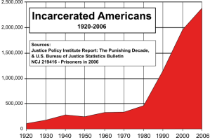 Let us travel back in time. In Reagan’s America the prison population more than tripled. Conservatives have the tendency to be harsh in their punishments, they like to point the finger at the perpetrator. The “War On Drugs” (WOD) is one of the biggest waste of America’s monies as well as resources. The prohibition on drugs has been a huge failure.It reminds me of the Nancy Reagan campaign “Just Say No“. I’m not a huge advocate for drugs or drug use but some people fall into the trap of becoming addicts. People have the right to make that mistake and should be able to choose to. We shouldn’t legislate people’s rights. If we legalized all drugs people would use less. Look at the history of prohibition of alcohol. People are going to use anyway. WOD isn’t necessarily about drugs or drug flow but more about population control. Look at the make up of prisons and also take a close look at the crimes themselves. It’s mostly for possession offenses, victimless crimes. Blacks and Hispanics have been targeted the most and more harshly. Within certain communities the poorer you are the harsher the sentences. These harsh laws were set up to control population they were worried about expanding. Look at the history of prohibition starting in the early 30’s and look at the different ethnic groups during that time and how big government was trying to control what they could and could not do. Remember in our America there is a caste system; it’s called class warfare and it’s a real issue. The poor, the lost, the abandoned and the voiceless.