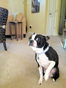 Bayli, a Boston Terrier, looks better than that thing and she has personality. Here she is giving a half-hearted high-five, she hates the camera, she thinks it’s evil, LOL!