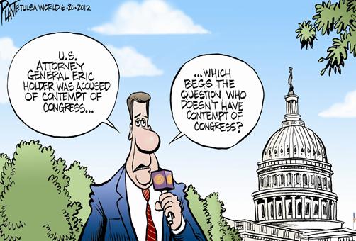 Politics Holder’s Contempt Date: 06/29/2012Author: The Confirmation Files 0 Comments Cartoon: USA Today Posted by Libergirl Share this: Click to email a link to a friend (Opens in new window) Email Click to share on Facebook (Opens in new window) Facebook Click to share on X (Opens in new window) X Click to share on Tumblr (Opens in new window) Tumblr More Click to share on Reddit (Opens in new window) Reddit Like Loading...