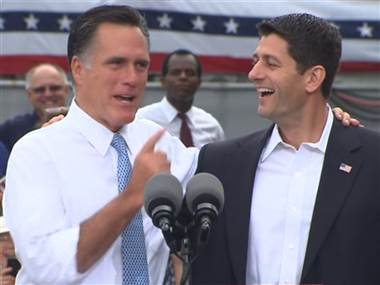 Romney portrayed the Wisconsin congressman as “an intellectual leader of the Republican Party” and a man who “understands the fiscal catastrophe that awaits us if we don’t change course.”