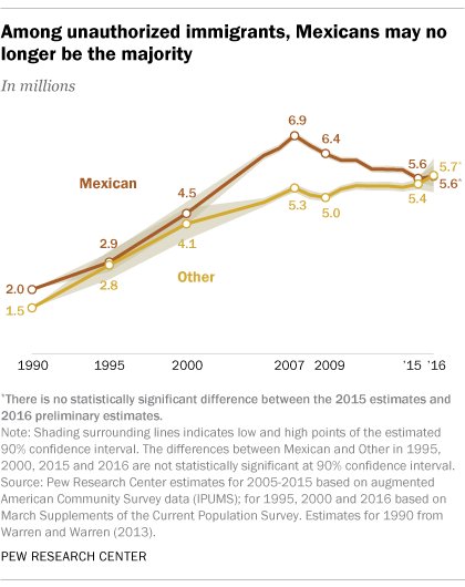 It is estimated that 2016 was the first year since 2005 that Mexicans have not made up the majority of the unauthorized immigrant population.