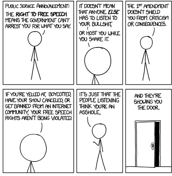 The limits of free speech In America, we don’t punish mere words and there are no limits on public free speech